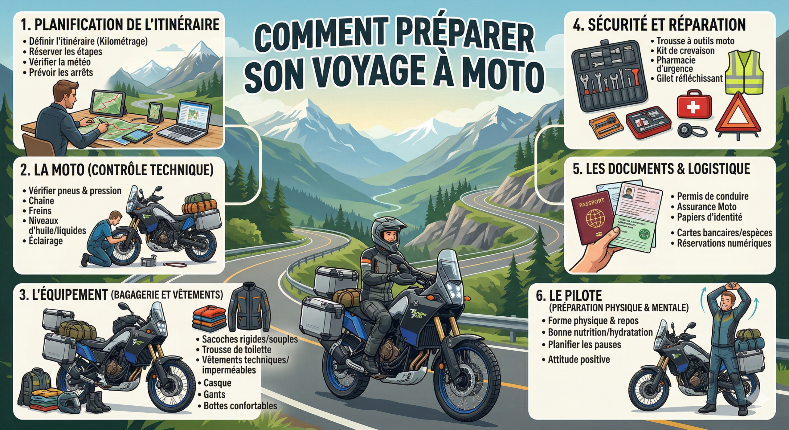 Partir à moto, ça ne s’improvise pas. Que vous soyez débutant ou déjà expérimenté, une bonne préparation fait toute la différence.