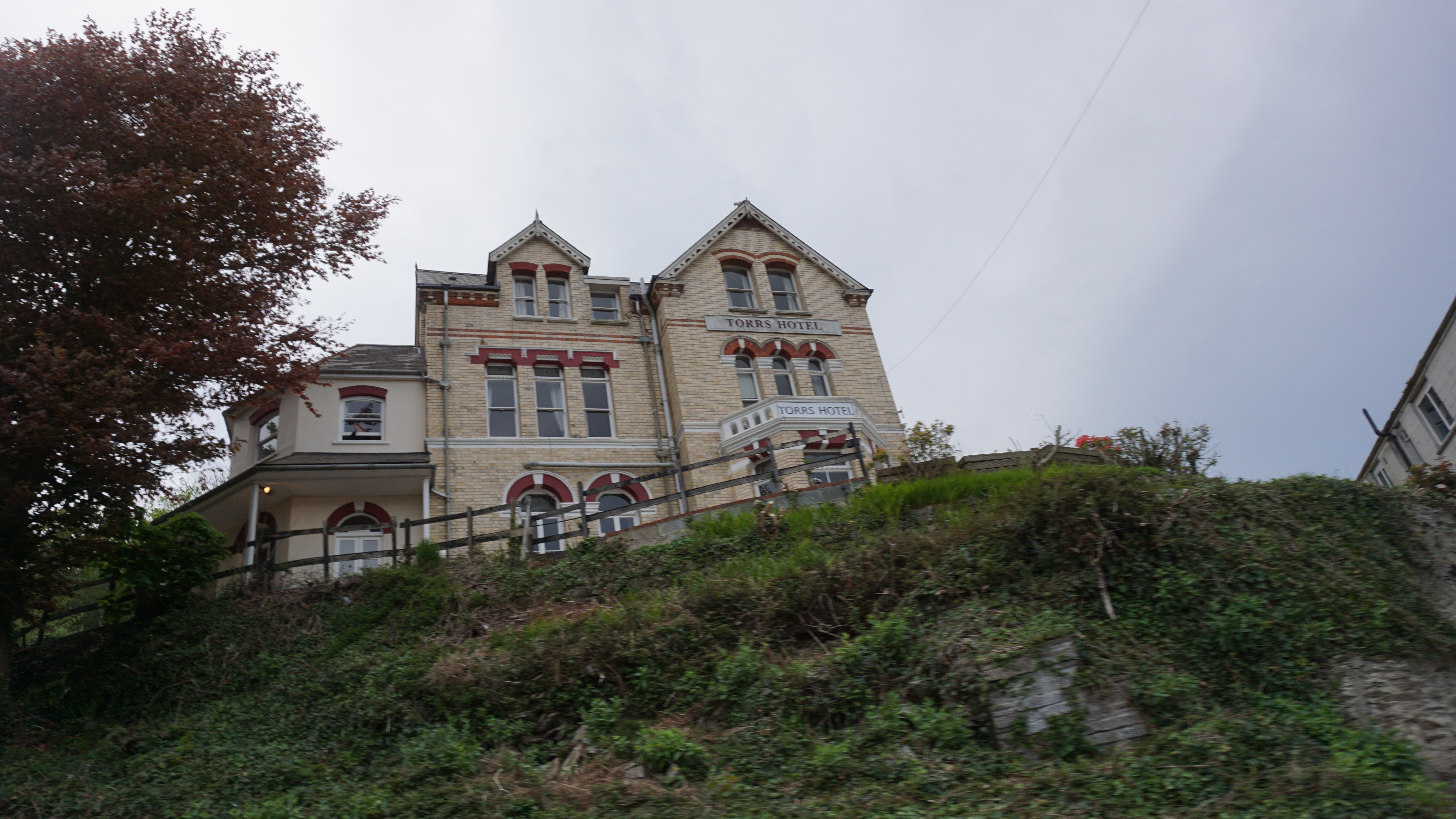 Nous voilà arrivés à « Torrs Hôtel » qui surplombe les rochers. De la terrasse, on aperçoit la ville et la côte, et les chambres sont toutes particulières : pour les amoureux c’est le duplex le plus haut (pour le bruit…); le rose n’est pas ma couleur fétiche, mais Klaus et moi n’avons même pas remarqué la couleur de notre chambre 🙂 ! Bel endroit, à 2 minutes du centre ville pour aller souper. Aujourd’hui, ce sera un resto indien. L’apéro de houmous pimenté accompagné de naan nature ou à l’ail, de chutney de mangues,…et le reste, délicieux !