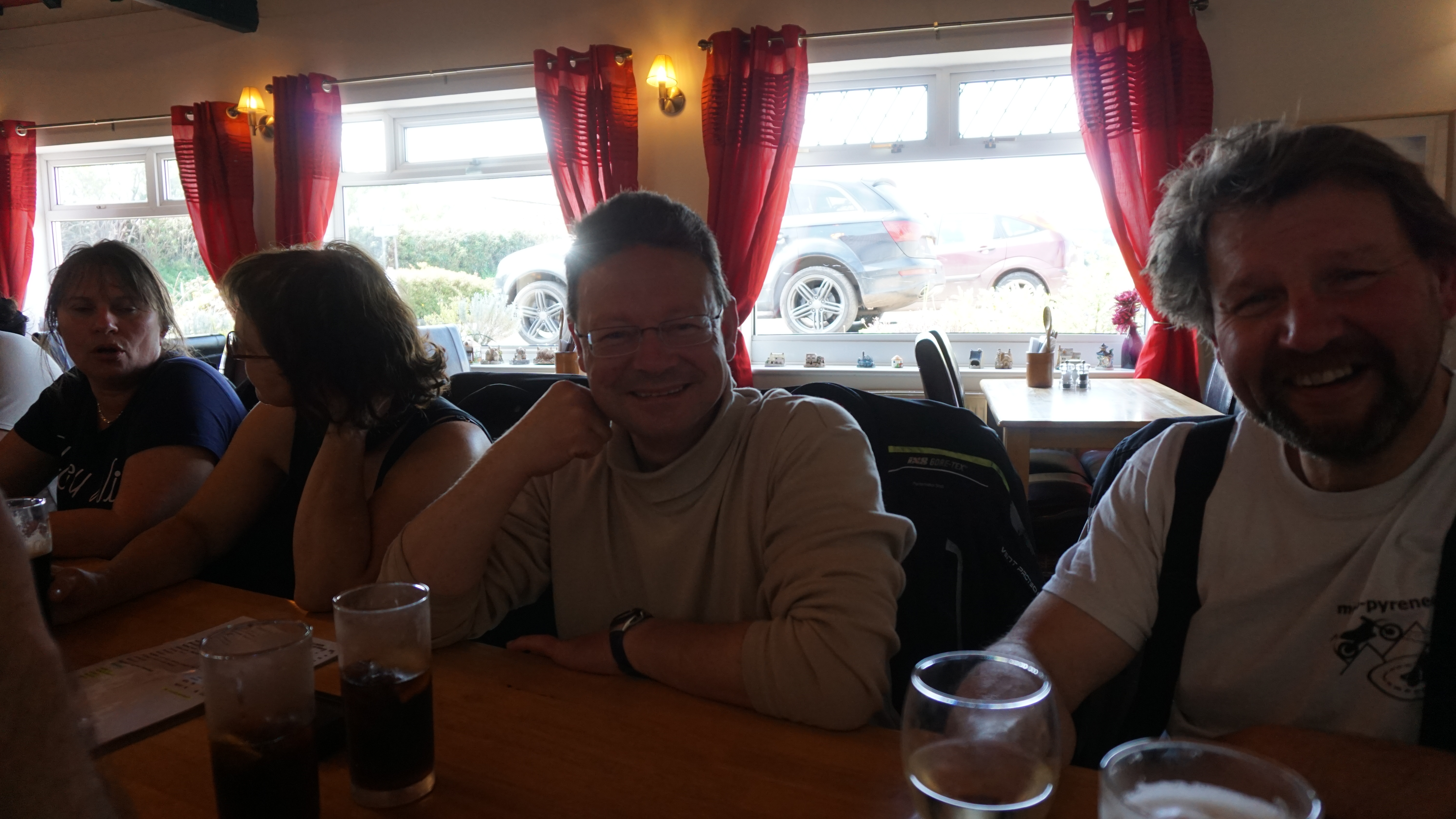 On passera la River Dart, Newton Abbot, Telgnmouth, longer la mer jusque Dawlish, et remonter sur Exeter. Là, dans un bistro, pour boire un verre, il vaut mieux être une femme, du moins dans ce café-là, et la bière, il vaut mieux la boire à la bouteille. On va pas faire le difficile, même de passage, on préfère ne pas tarder à remonter sur les motos ! Ca tombe bien, il reste encore une trotte !