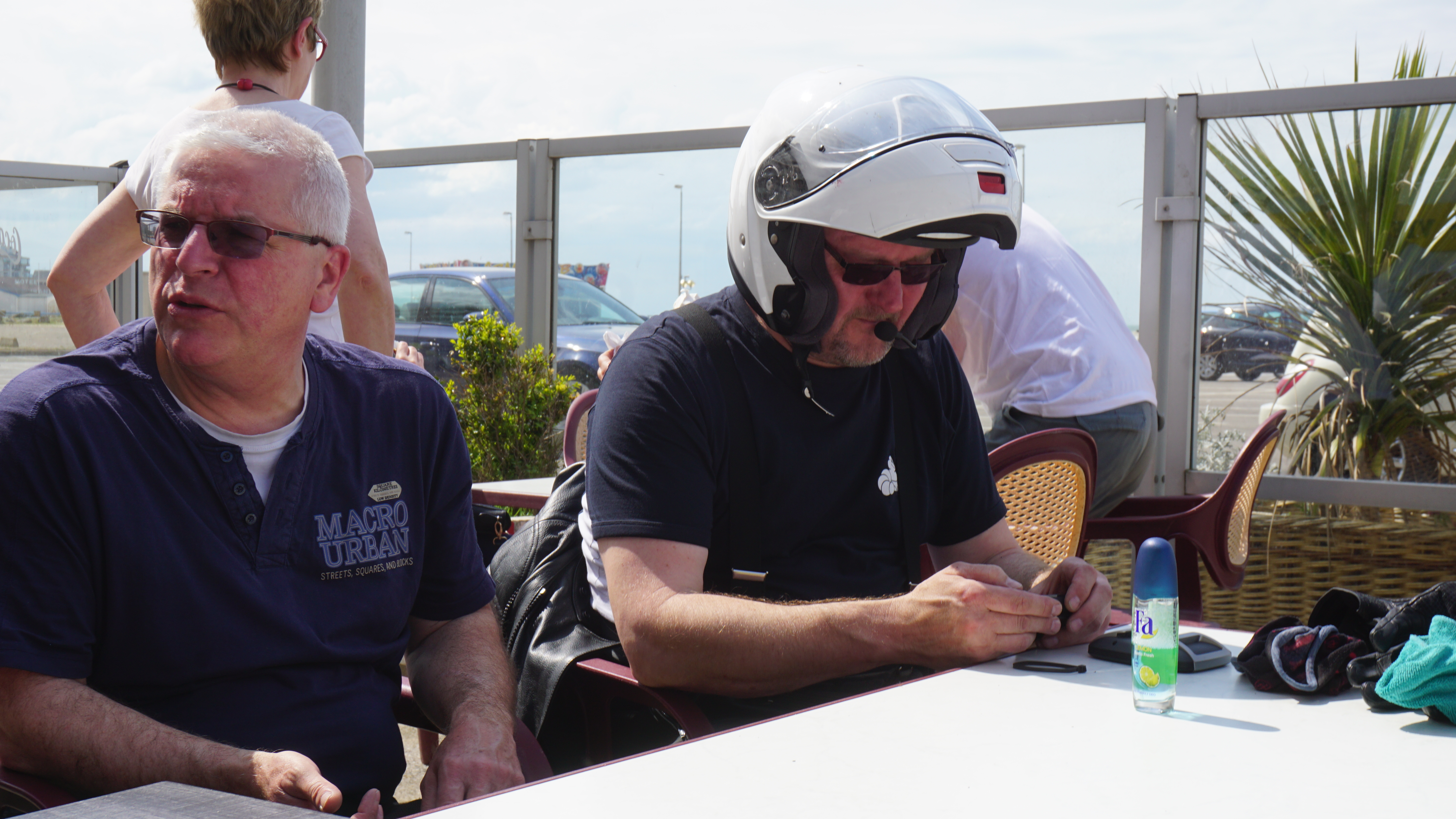 Chacun se rejoint au fur et à mesure sur la route vers Calais pour l’enregistrement de 11h06, départ 11h36, arrivée 11h11, vu le décalage horaire de -1h. A peine le temps de discuter que le Suttle entre en Angleterre.