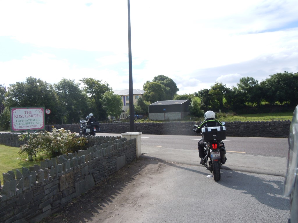 Lors du 1er repas à la pizzeria, la serveuse nous a confié qu’elle avait roulé derrière un vrai motard qui avait une Kawa. Il n’en fallait pas plus pour Vincent pour avoir un sourire radieux!!! Par contre,le break sera court car le mauvais temps arrive et nous aurons un temps de canard toute l’après-midi, avec des rafales de vent et de pluie qui chassent tellement fort que nous serons quand même mouillés au cou et aux mains : les gants perceront, trop d’eaux ! On aura jamais penché autant en ligne droite ! D’ailleurs, il n’y aura pas de photos l’après-midi : l’appareil était à l’abris dans le coffre…